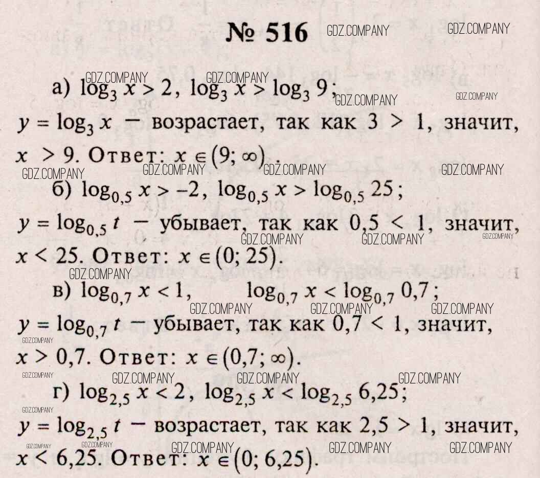 Здесь готовые ответы по Алгебре за 11 (десятый) класс от Колмогоров, Абрамов, Дудницын, Ивлев, Шварцбурд Учебник (издательство: Просвещение от 2008 г.) № 516