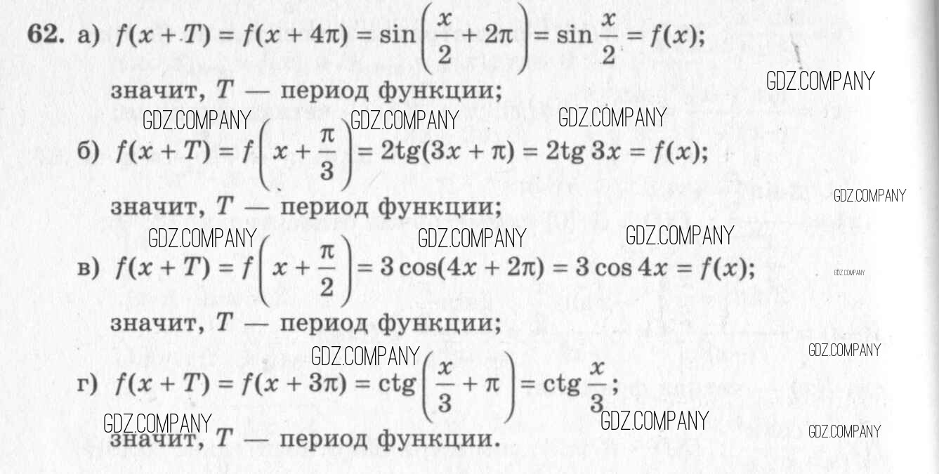 Здесь готовые ответы по Алгебре за 11 (десятый) класс от Колмогоров, Абрамов, Дудницын, Ивлев, Шварцбурд Учебник (издательство: Просвещение от 2008 г.) № 62
