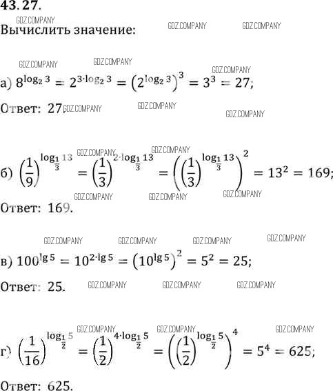 Здесь готовые ответы по Алгебре за 11 (десятый) класс от Мордкович, Денищева, Корешкова, Мишустина, Семёнов, Тульчинская Задачник Базовый уровень (издательство: Мнемозина от 2015 г.) № 43. 27 Базовый уровень