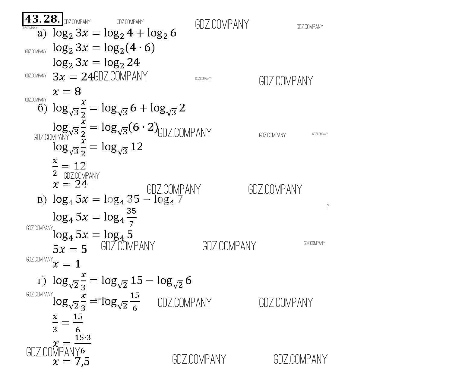 Здесь готовые ответы по Алгебре за 11 (десятый) класс от Мордкович, Денищева, Корешкова, Мишустина, Семёнов, Тульчинская Задачник Базовый уровень (издательство: Мнемозина от 2015 г.) № 43. 28 Базовый уровень