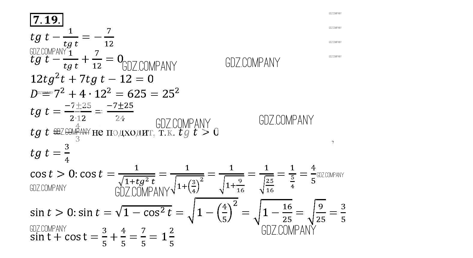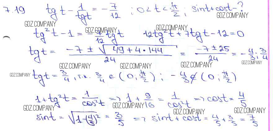 Здесь готовые ответы по Алгебре за 11 (десятый) класс от Мордкович, Денищева, Корешкова, Мишустина, Семёнов, Тульчинская Задачник Базовый уровень (издательство: Мнемозина от 2015 г.) № 7. 19 Базовый уровень
