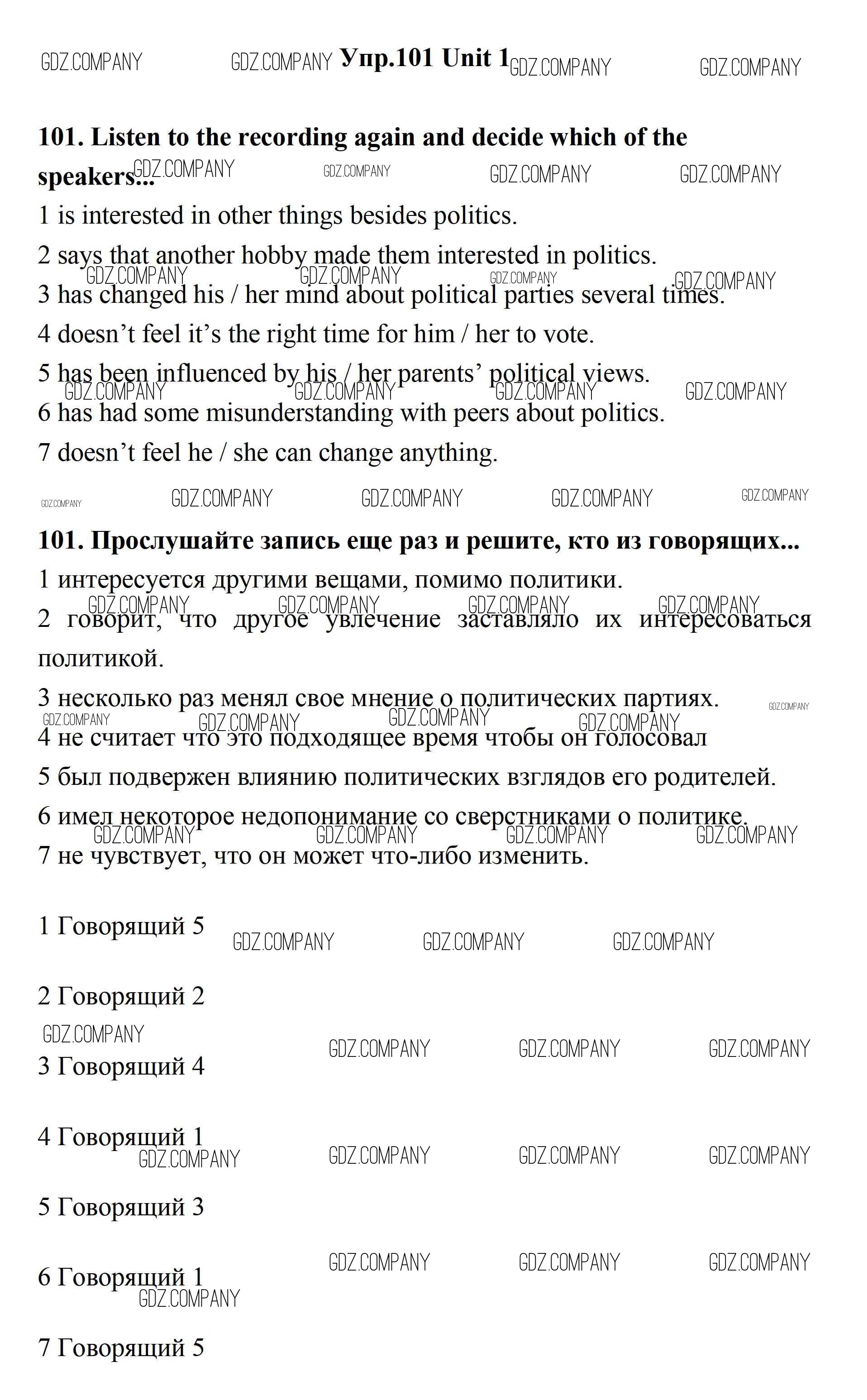 Здесь готовые ответы по Английскому языку за 11 (одиннадцатый) класс от Биболетова, Бабушис, Снежко Учебник Enjoy English (издательство: Дрофа от 2017 г.) № 101