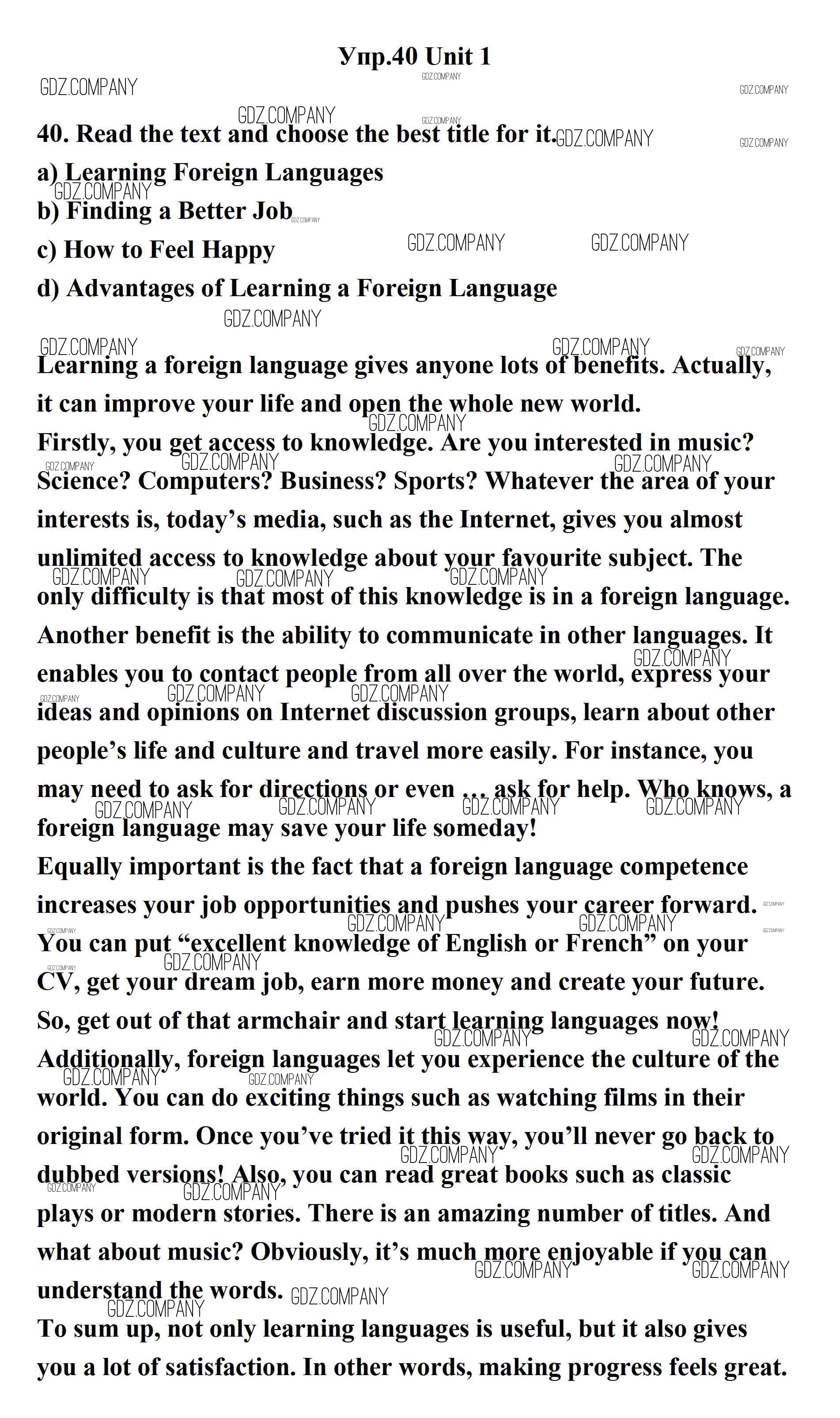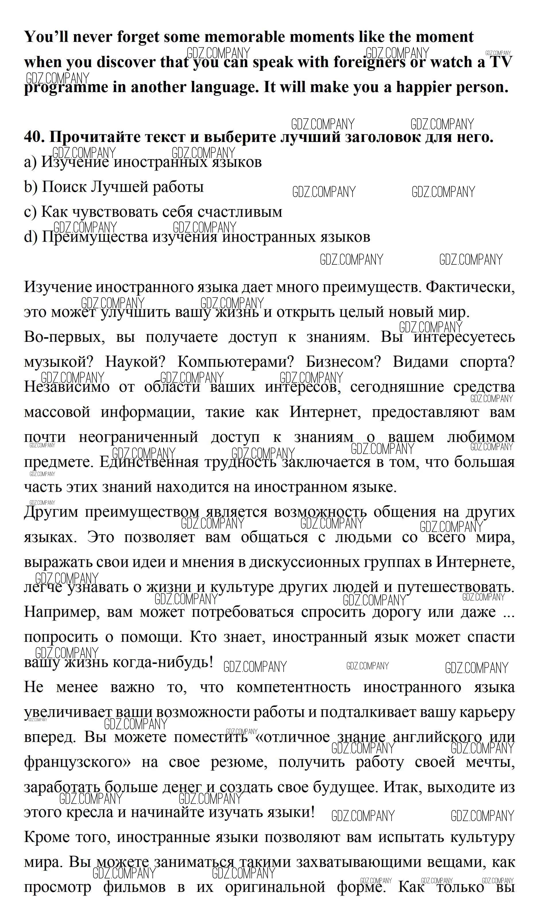 Здесь готовые ответы по Английскому языку за 11 (одиннадцатый) класс от Биболетова, Бабушис, Снежко Учебник Enjoy English (издательство: Дрофа от 2017 г.) № 40