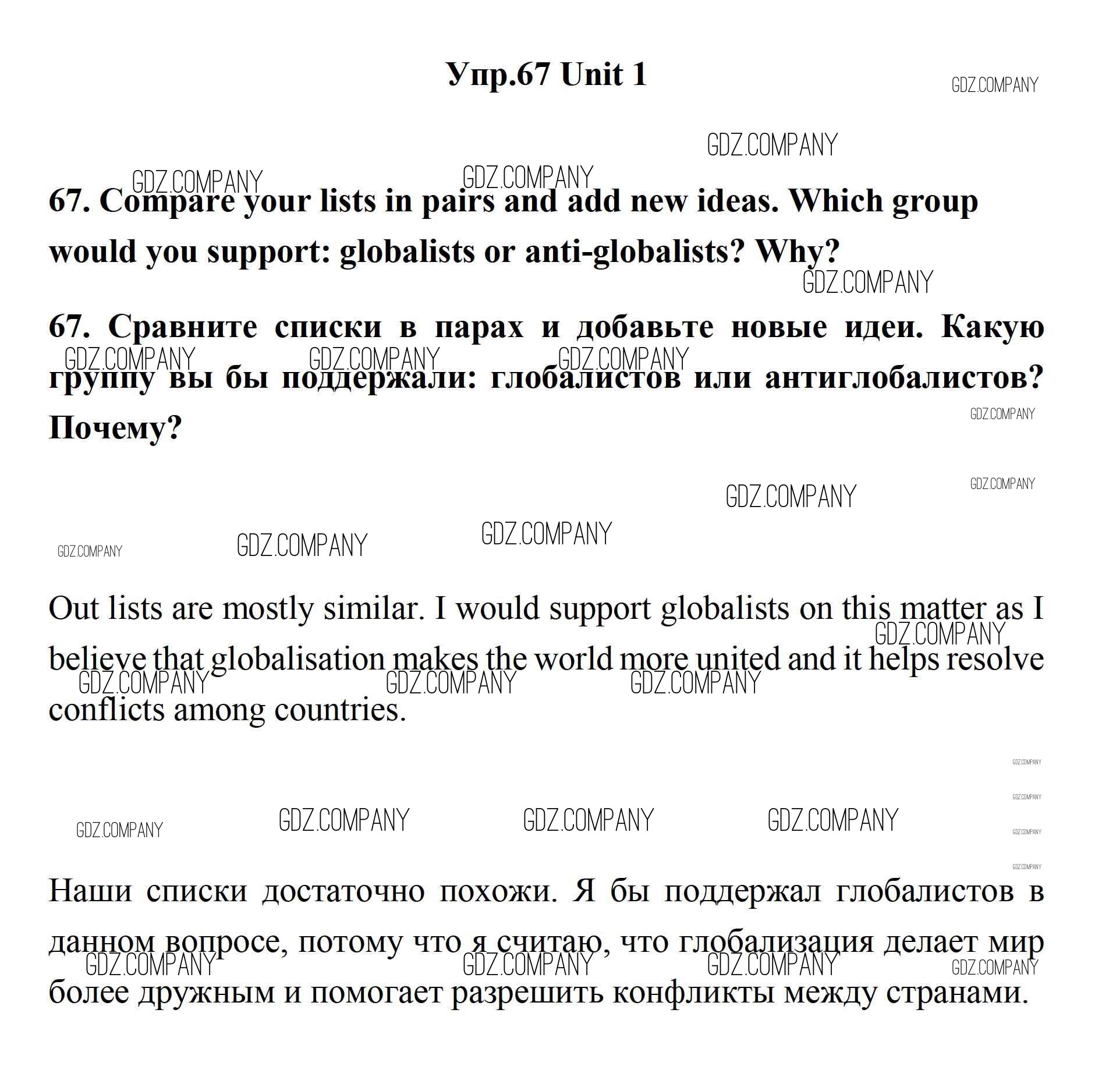 Здесь готовые ответы по Английскому языку за 11 (одиннадцатый) класс от Биболетова, Бабушис, Снежко Учебник Enjoy English (издательство: Дрофа от 2017 г.) № 67