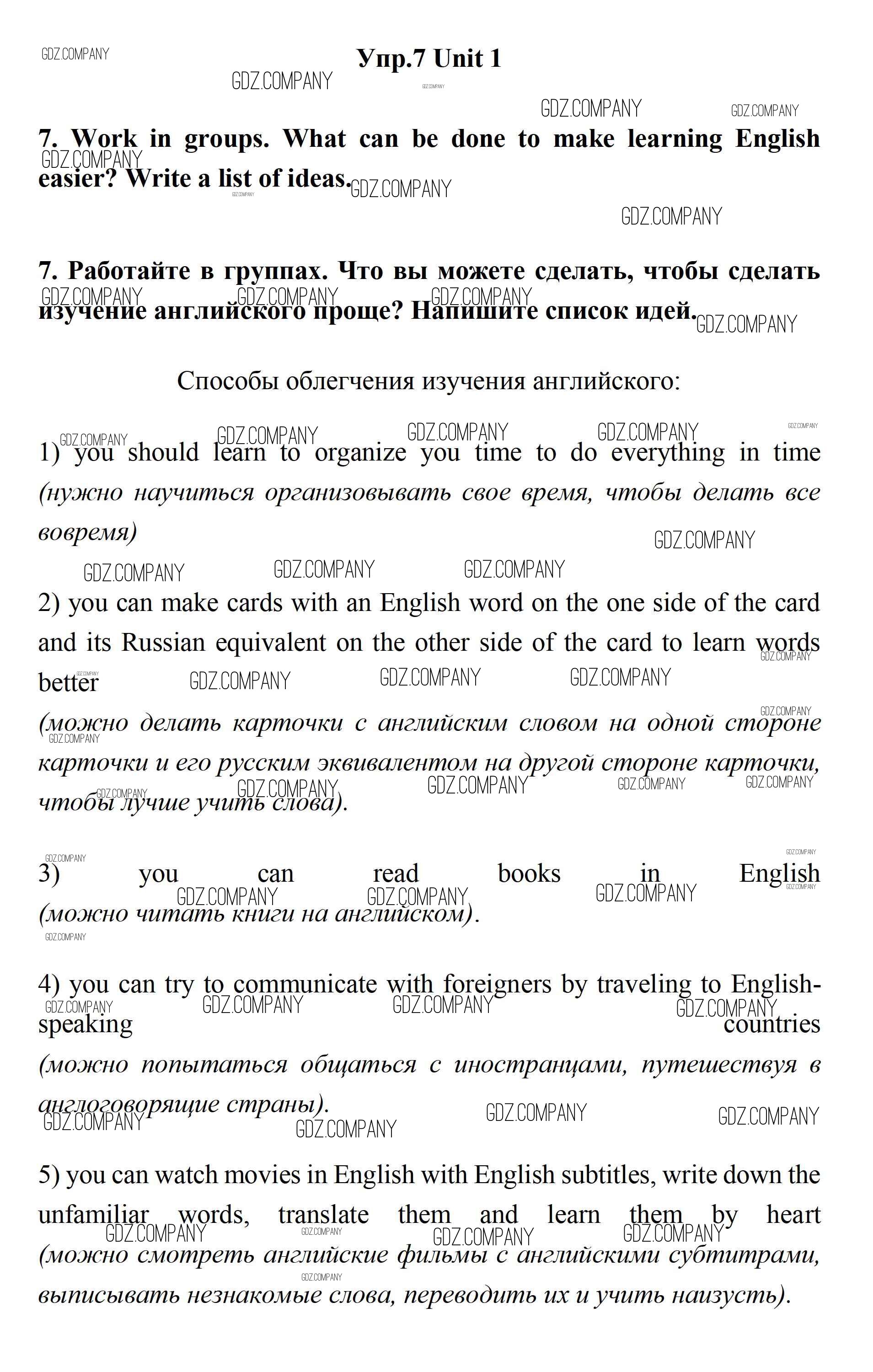 Здесь готовые ответы по Английскому языку за 11 (одиннадцатый) класс от Биболетова, Бабушис, Снежко Учебник Enjoy English (издательство: Дрофа от 2017 г.) № 7