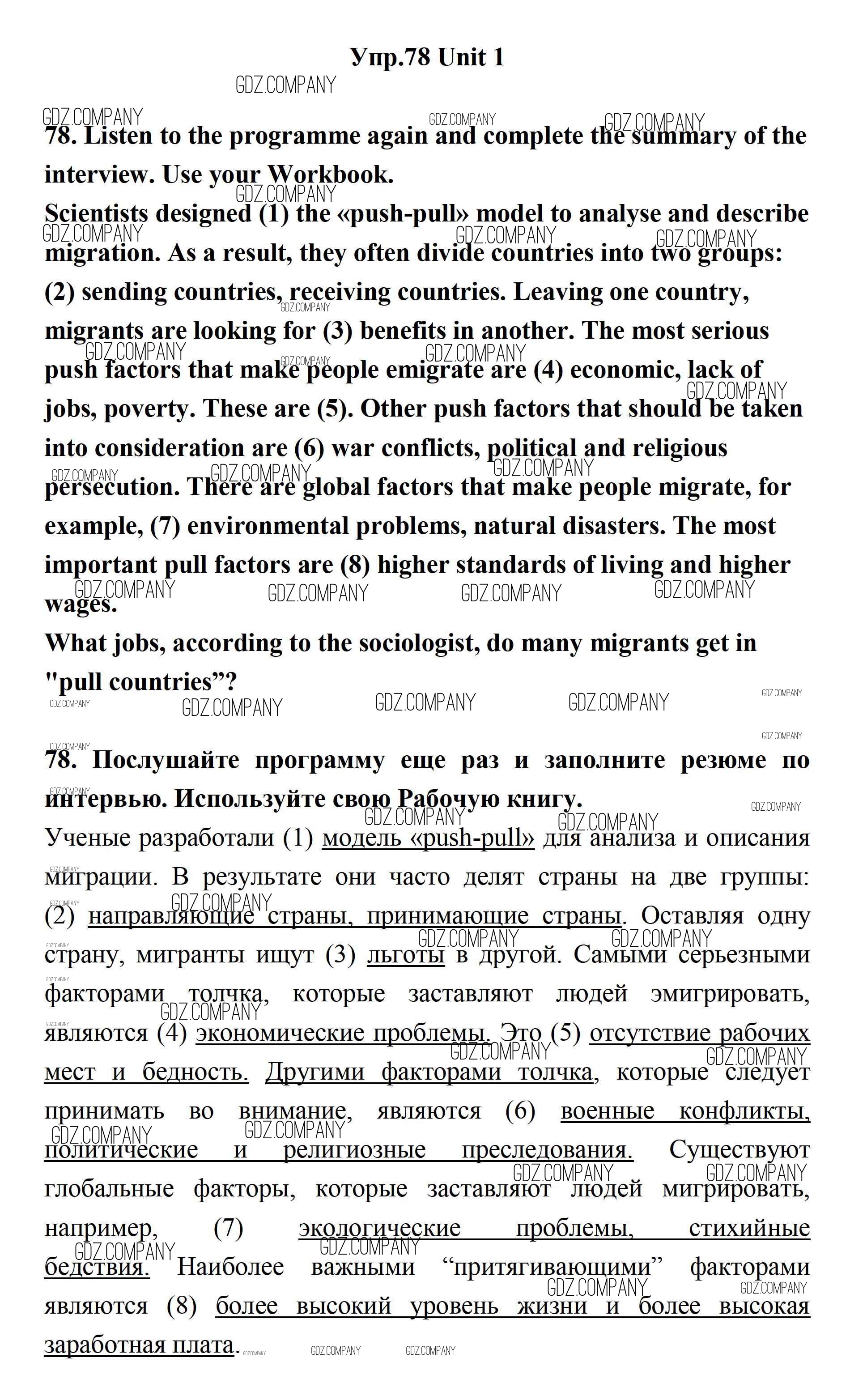 Здесь готовые ответы по Английскому языку за 11 (одиннадцатый) класс от Биболетова, Бабушис, Снежко Учебник Enjoy English (издательство: Дрофа от 2017 г.) № 78