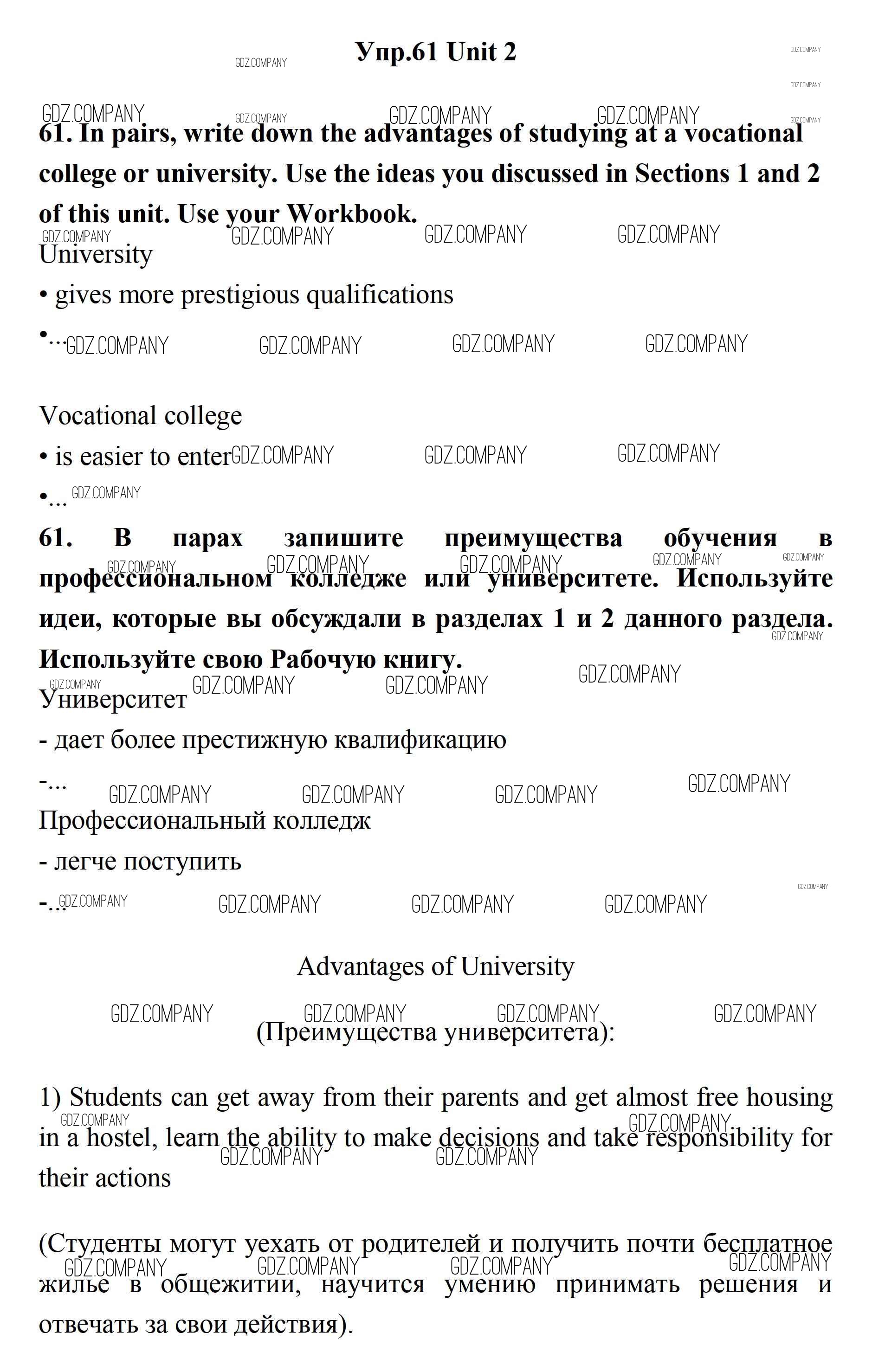 Здесь готовые ответы по Английскому языку за 11 (одиннадцатый) класс от Биболетова, Бабушис, Снежко Учебник Enjoy English (издательство: Дрофа от 2017 г.) № 61