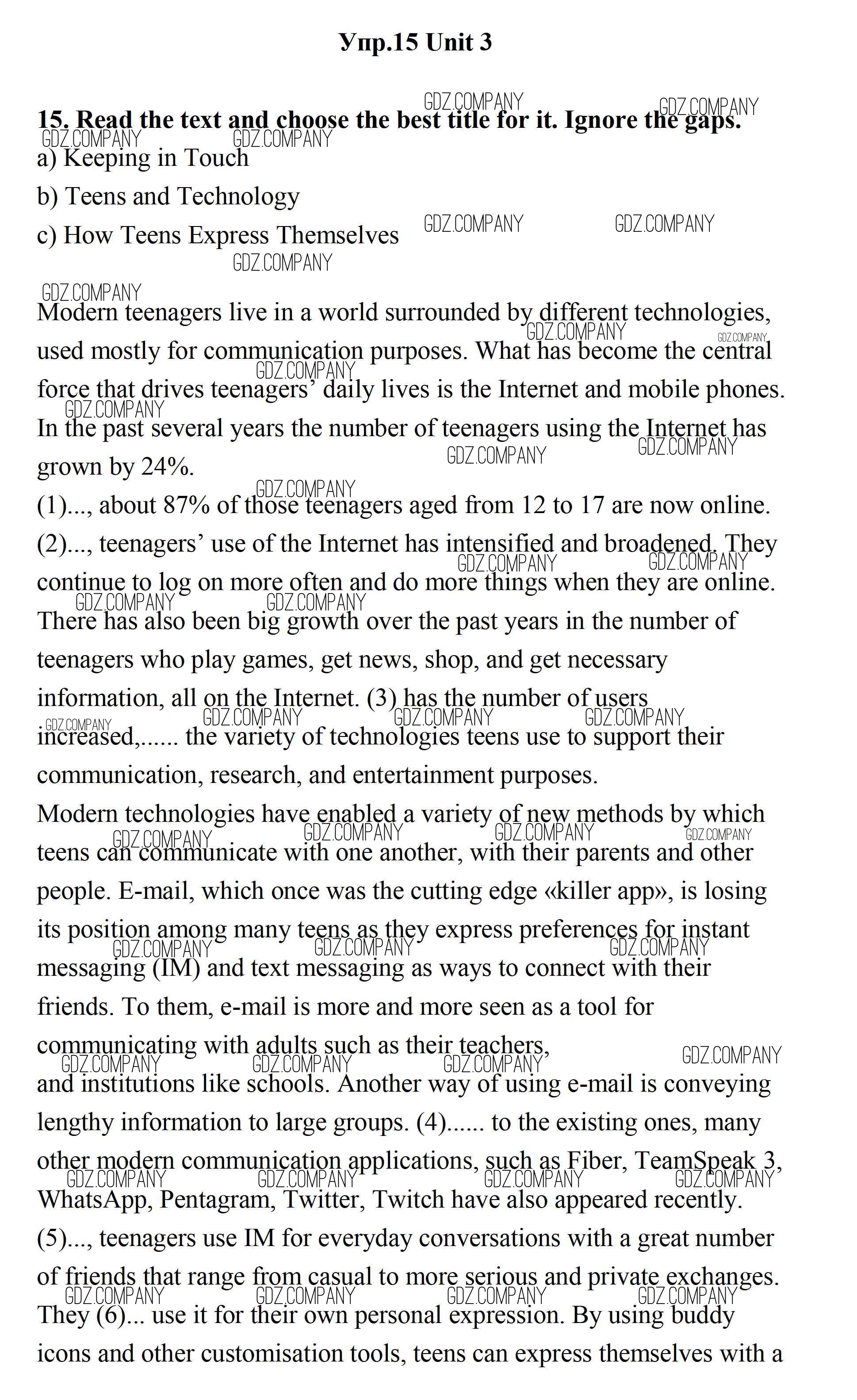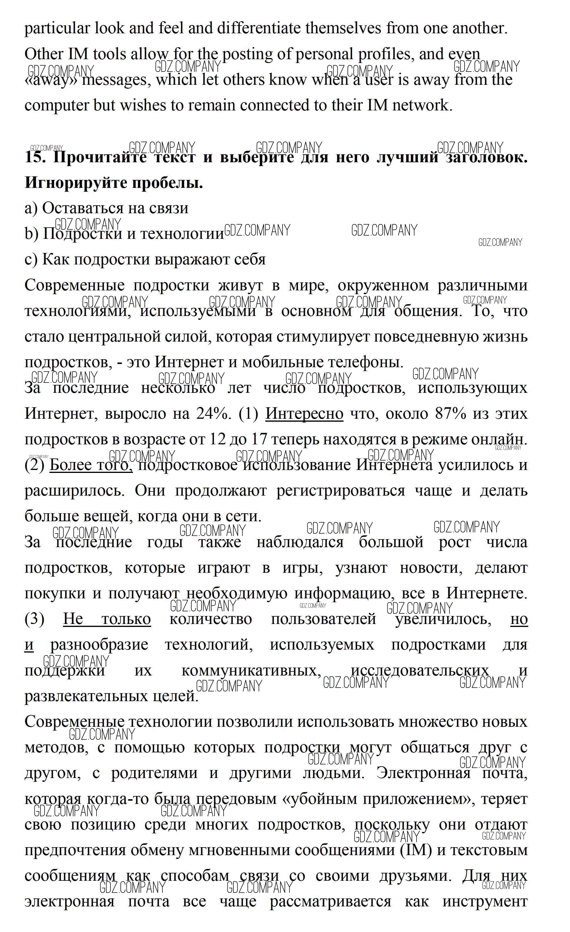 Здесь готовые ответы по Английскому языку за 11 (одиннадцатый) класс от Биболетова, Бабушис, Снежко Учебник Enjoy English (издательство: Дрофа от 2017 г.) № 15