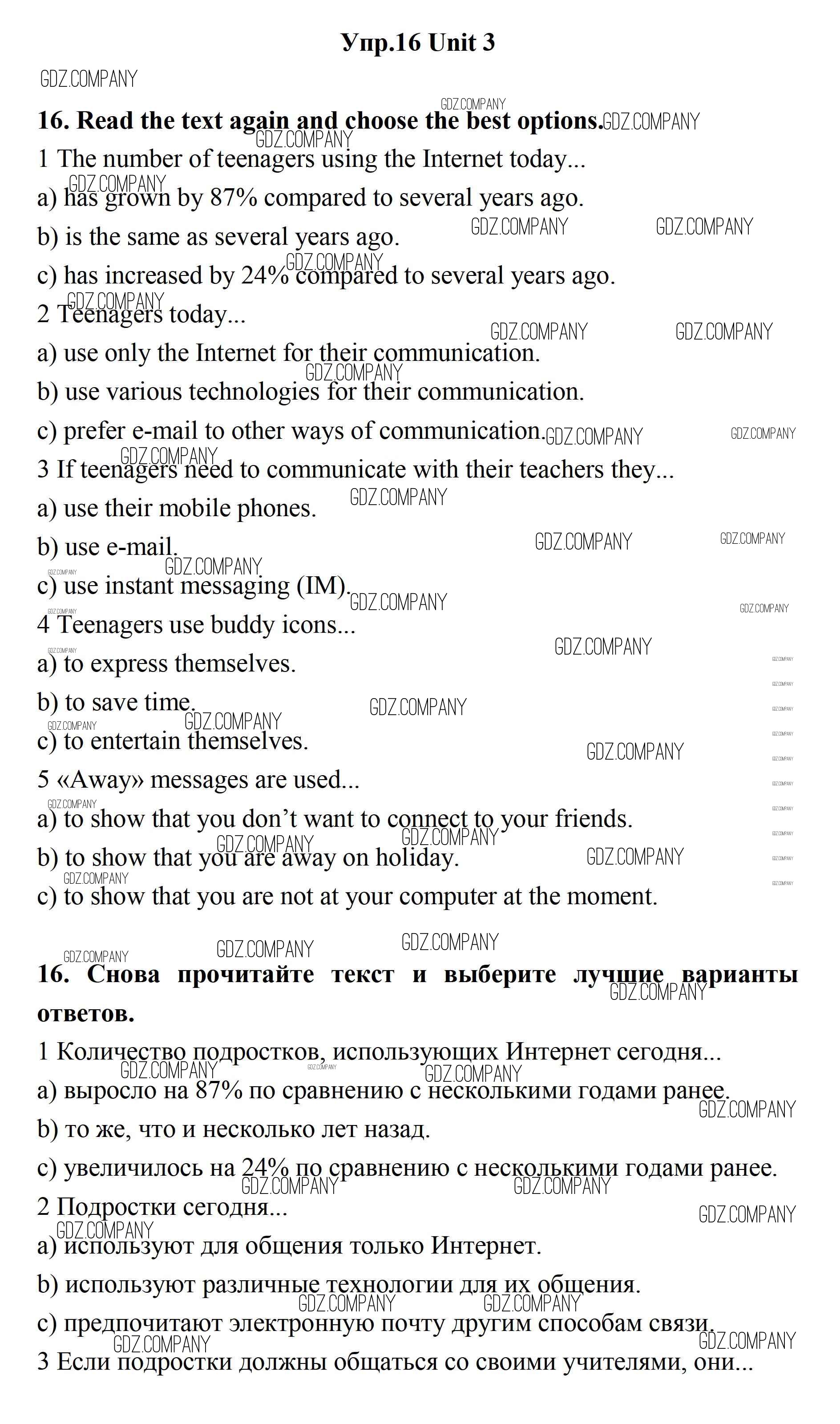 Здесь готовые ответы по Английскому языку за 11 (одиннадцатый) класс от Биболетова, Бабушис, Снежко Учебник Enjoy English (издательство: Дрофа от 2017 г.) № 16