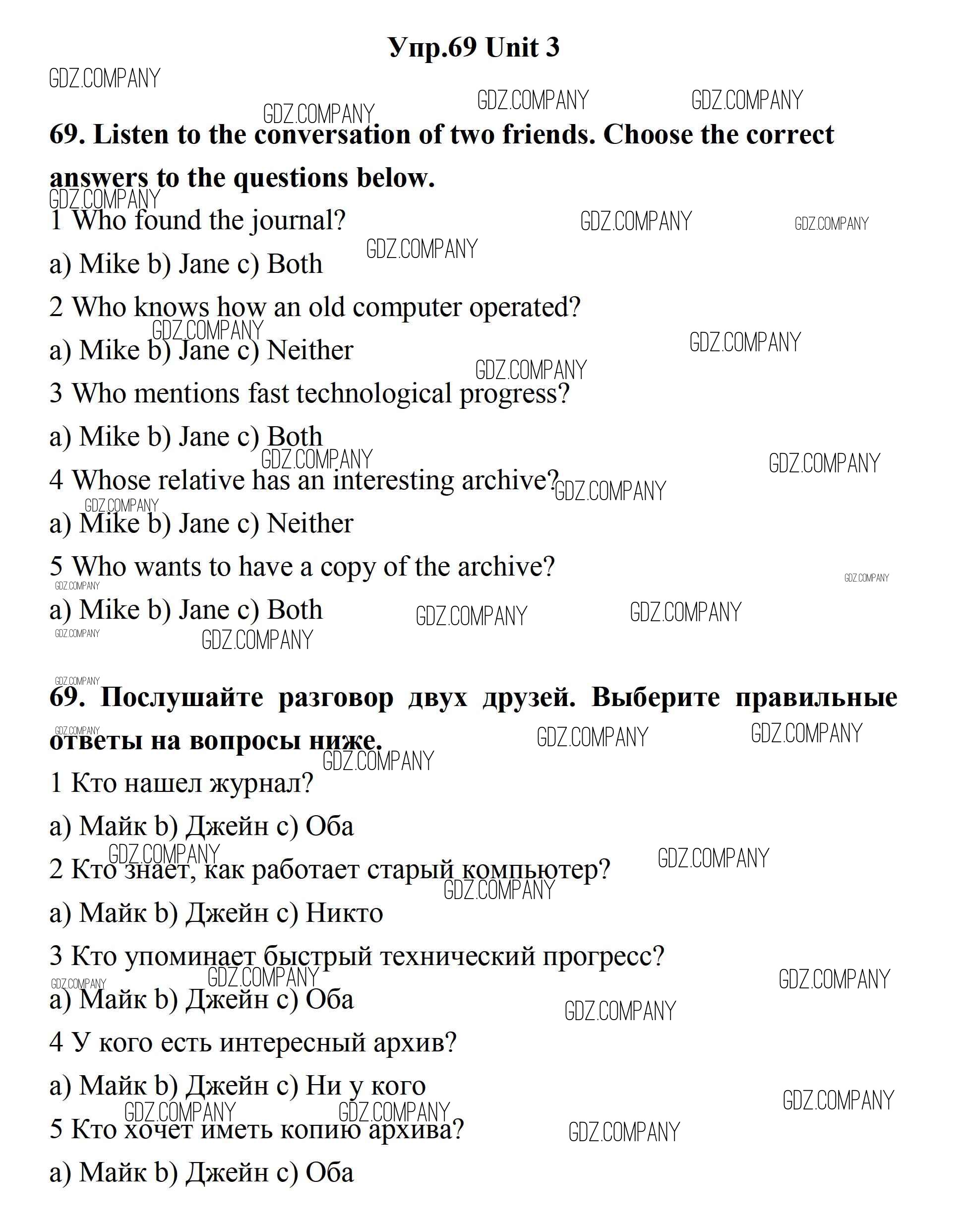 Здесь готовые ответы по Английскому языку за 11 (одиннадцатый) класс от Биболетова, Бабушис, Снежко Учебник Enjoy English (издательство: Дрофа от 2017 г.) № 69