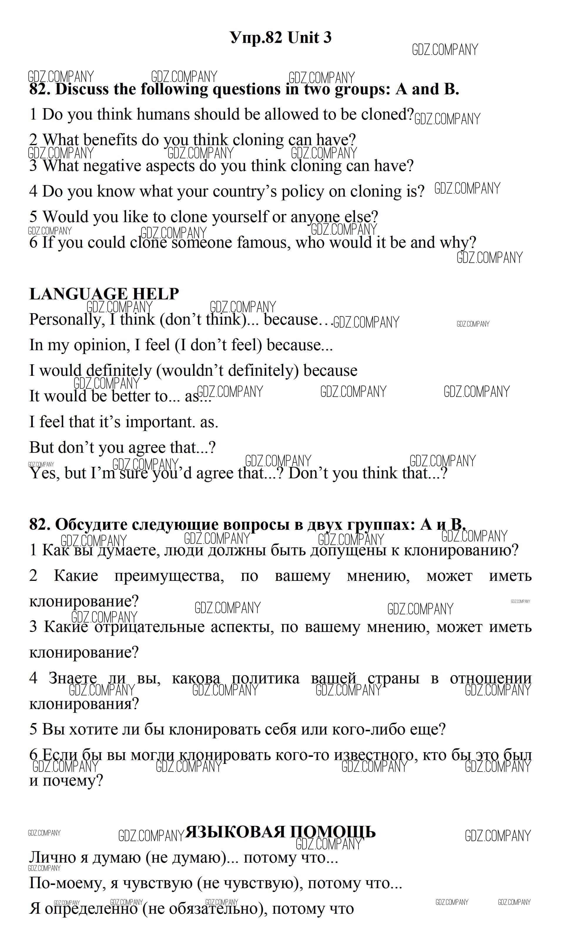 Здесь готовые ответы по Английскому языку за 11 (одиннадцатый) класс от Биболетова, Бабушис, Снежко Учебник Enjoy English (издательство: Дрофа от 2017 г.) № 82