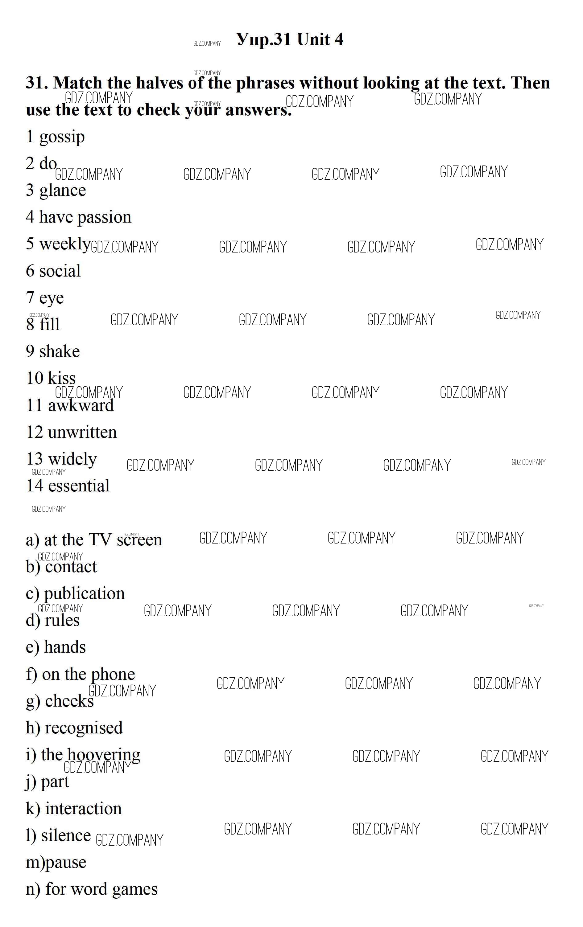 Здесь готовые ответы по Английскому языку за 11 (одиннадцатый) класс от Биболетова, Бабушис, Снежко Учебник Enjoy English (издательство: Дрофа от 2017 г.) № 31