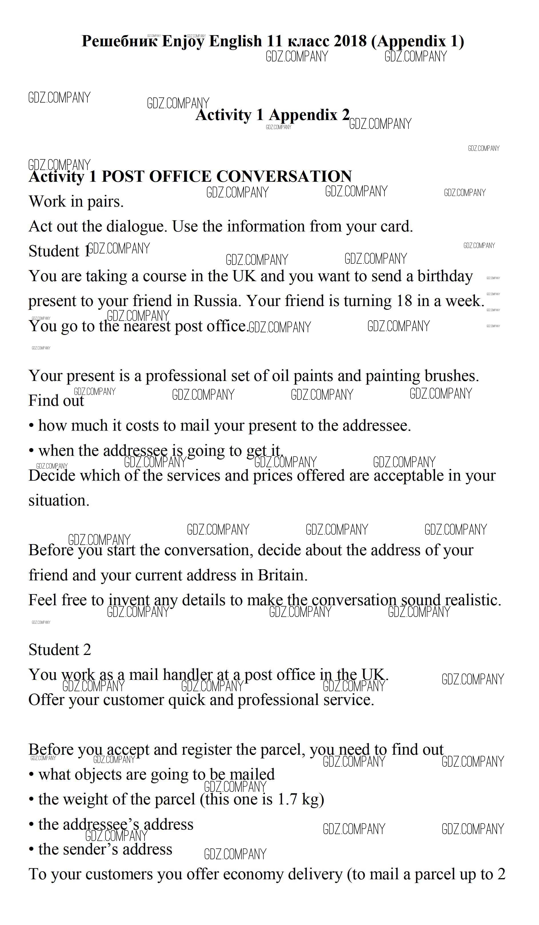 Здесь готовые ответы по Английскому языку за 11 (одиннадцатый) класс от Биболетова, Бабушис, Снежко Учебник Enjoy English (издательство: Дрофа от 2017 г.) № Activity 1