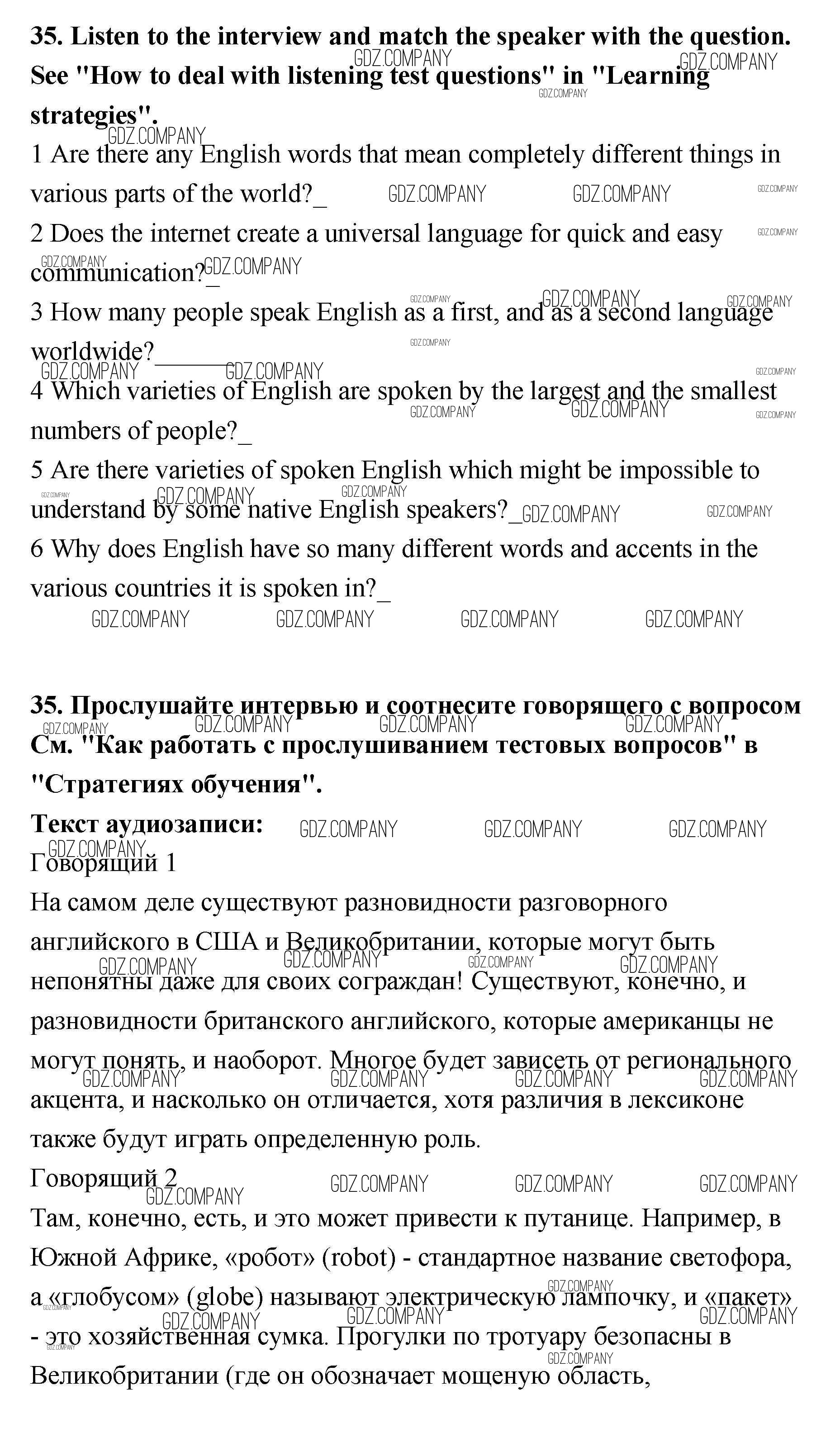 Здесь готовые ответы по Английскому языку за 11 (одиннадцатый) класс от Биболетова, Трубанева Учебник Enjoy English (издательство: Титул от 2015 г.) № 35