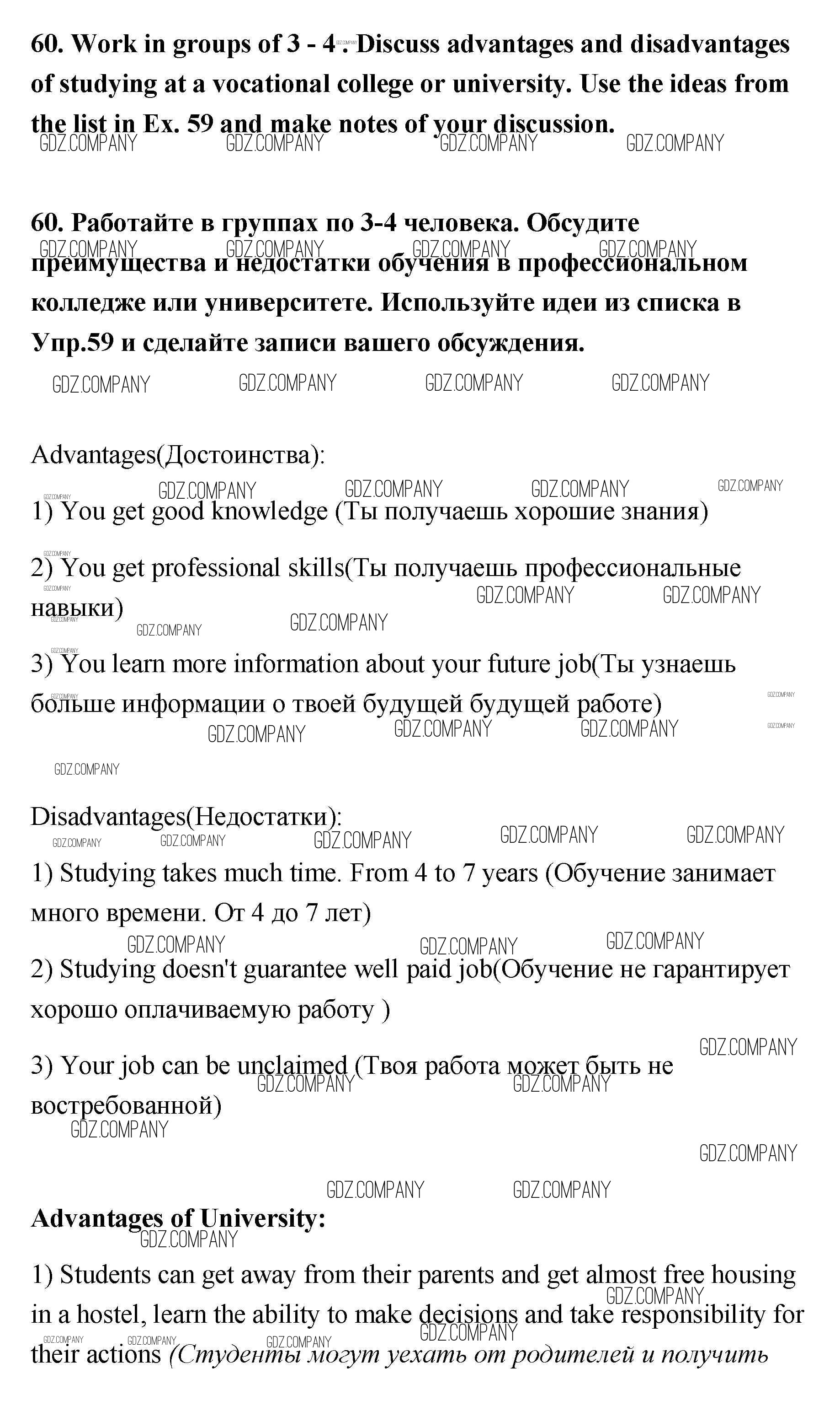 Здесь готовые ответы по Английскому языку за 11 (одиннадцатый) класс от Биболетова, Трубанева Учебник Enjoy English (издательство: Титул от 2015 г.) № 60