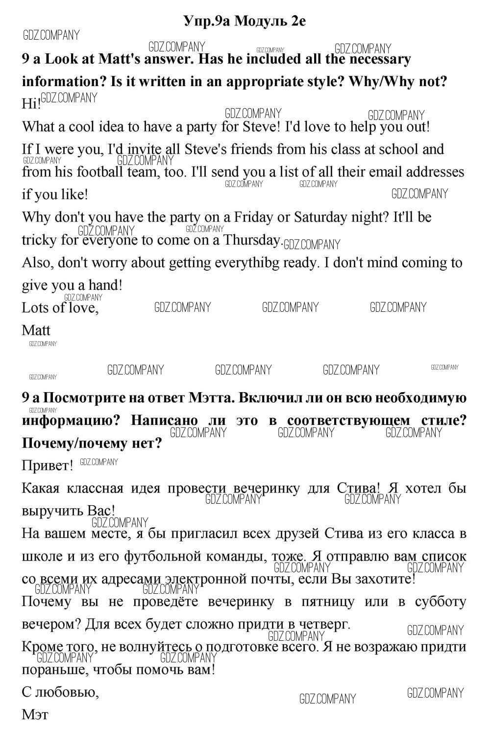 Здесь готовые ответы по Английскому языку за 11 (одиннадцатый) класс от Эванс, Дули, Оби, Афанасьева, Михеева Учебник Spotlight (издательство: Просвещение от 2015 г.) № 9a