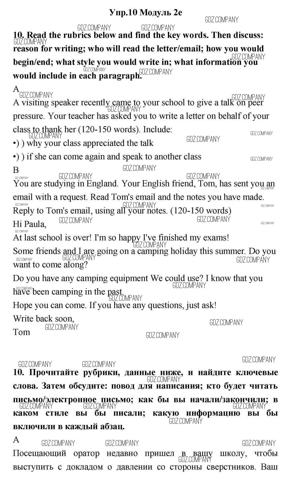 Здесь готовые ответы по Английскому языку за 11 (одиннадцатый) класс от Эванс, Дули, Оби, Афанасьева, Михеева Учебник Spotlight (издательство: Просвещение от 2015 г.) № 10