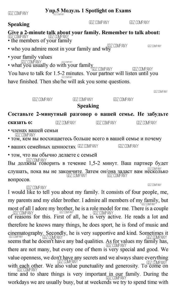 Здесь готовые ответы по Английскому языку за 11 (одиннадцатый) класс от Эванс, Дули, Оби, Афанасьева, Михеева Учебник Spotlight (издательство: Просвещение от 2015 г.) № Speaking
