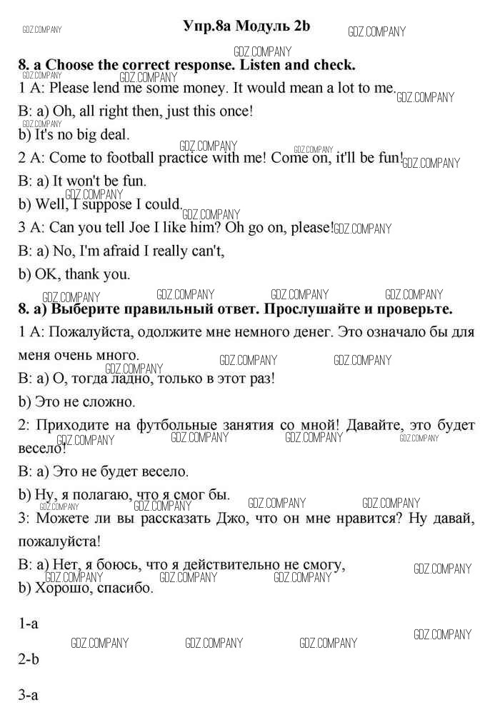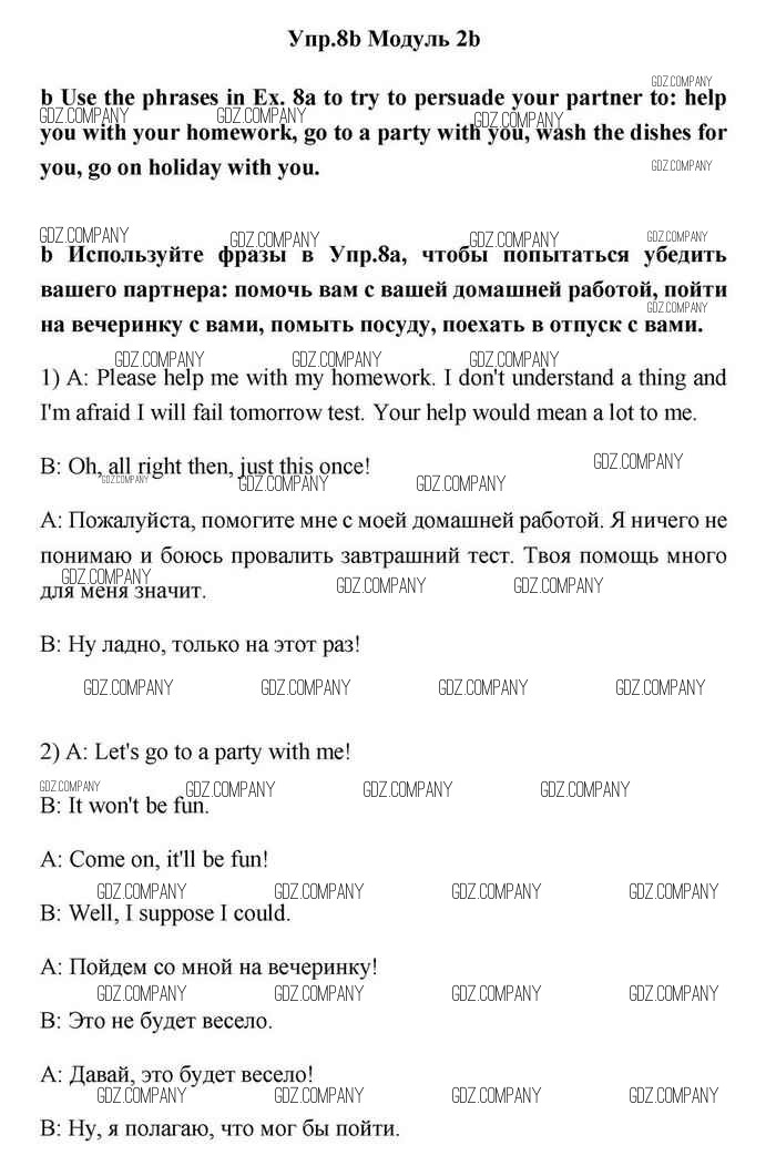Здесь готовые ответы по Английскому языку за 11 (одиннадцатый) класс от Эванс, Дули, Оби, Афанасьева, Михеева Учебник Spotlight (издательство: Просвещение от 2015 г.) № 8