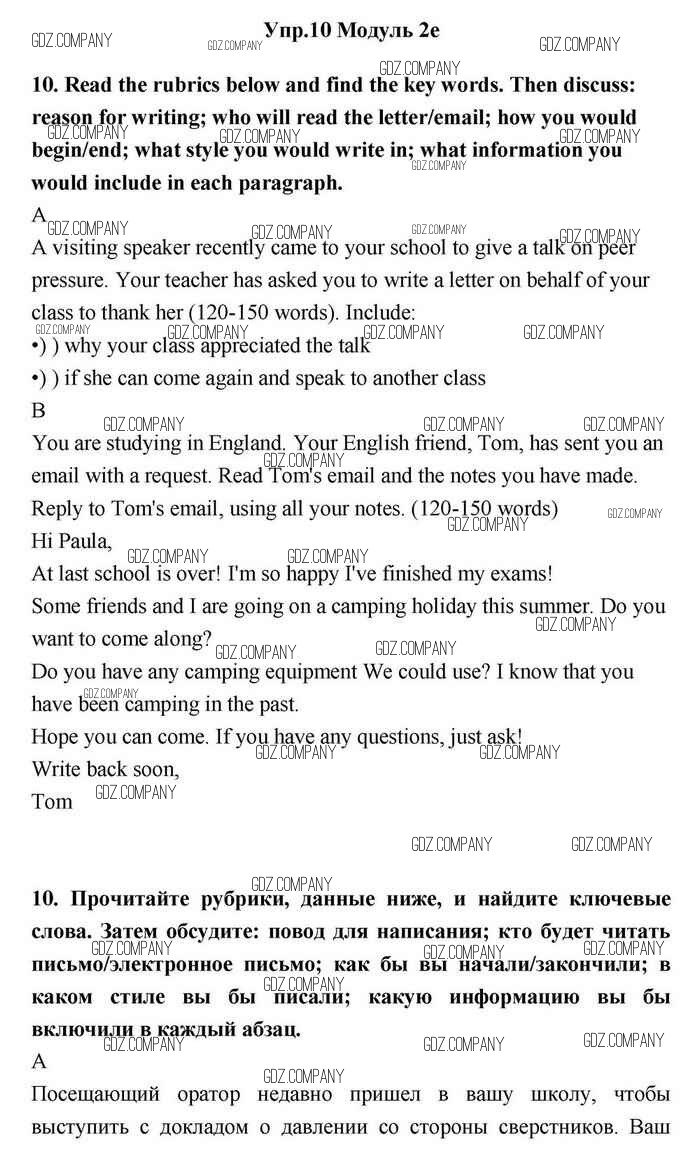 Здесь готовые ответы по Английскому языку за 11 (одиннадцатый) класс от Эванс, Дули, Оби, Афанасьева, Михеева Учебник Spotlight (издательство: Просвещение от 2015 г.) № 10