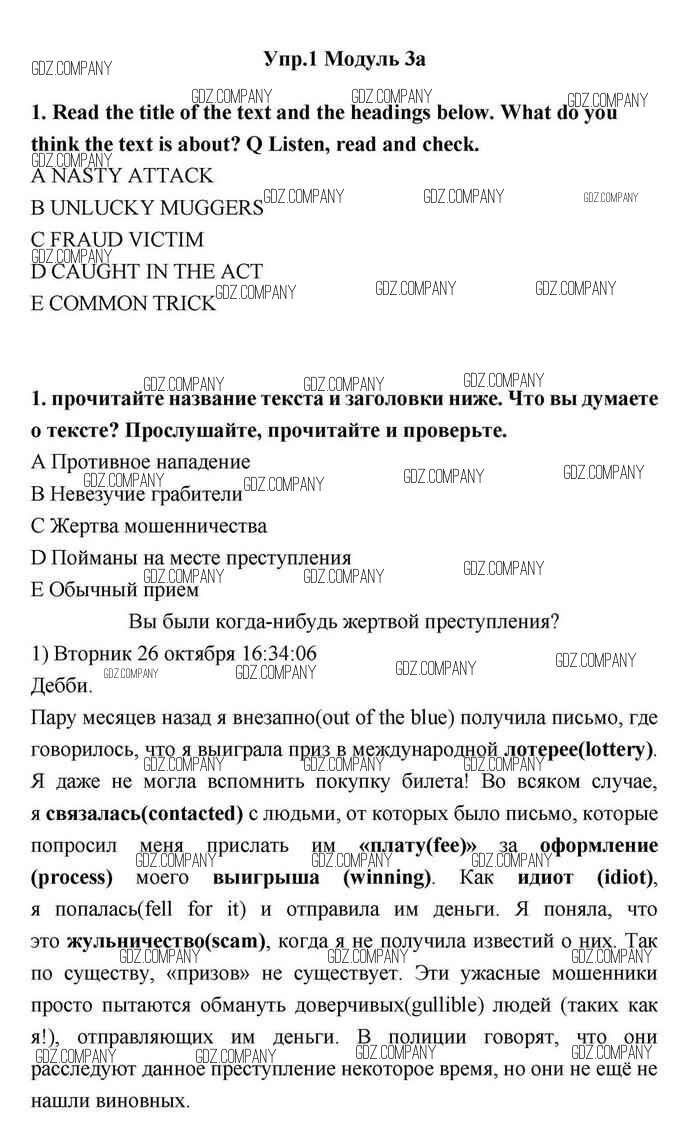 Здесь готовые ответы по Английскому языку за 11 (одиннадцатый) класс от Эванс, Дули, Оби, Афанасьева, Михеева Учебник Spotlight (издательство: Просвещение от 2015 г.) № 1