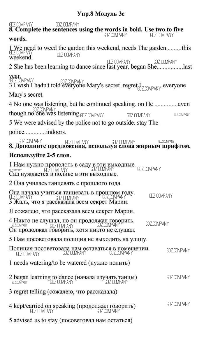 Здесь готовые ответы по Английскому языку за 11 (одиннадцатый) класс от Эванс, Дули, Оби, Афанасьева, Михеева Учебник Spotlight (издательство: Просвещение от 2015 г.) № 8