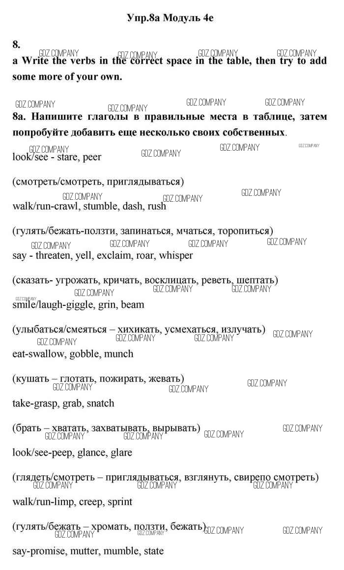 Здесь готовые ответы по Английскому языку за 11 (одиннадцатый) класс от Эванс, Дули, Оби, Афанасьева, Михеева Учебник Spotlight (издательство: Просвещение от 2015 г.) № 8