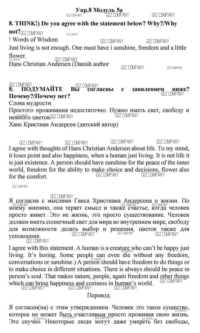 Здесь готовые ответы по Английскому языку за 11 (одиннадцатый) класс от Эванс, Дули, Оби, Афанасьева, Михеева Учебник Spotlight (издательство: Просвещение от 2015 г.) № 8