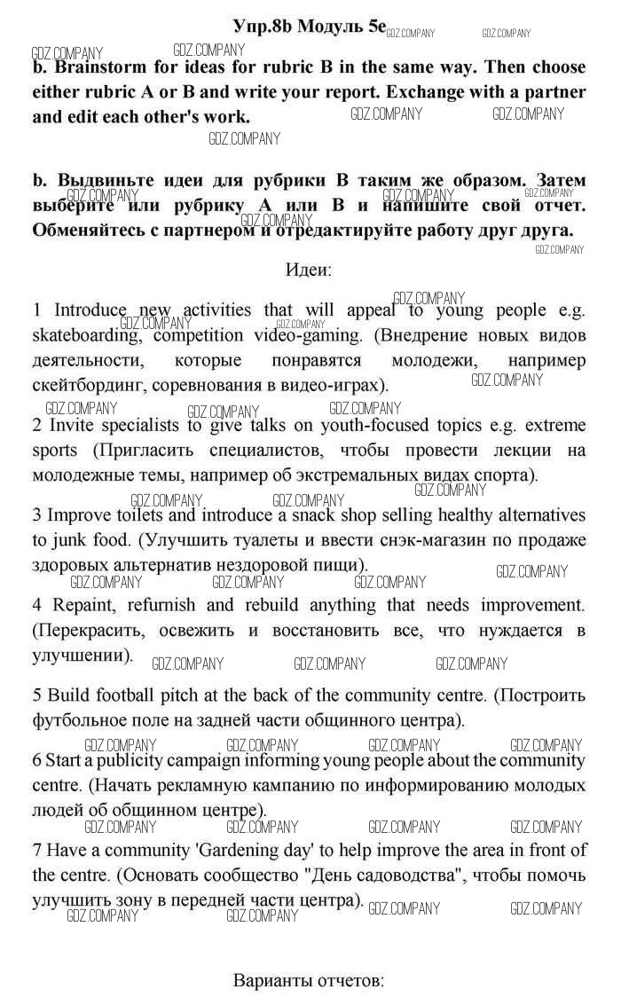 Здесь готовые ответы по Английскому языку за 11 (одиннадцатый) класс от Эванс, Дули, Оби, Афанасьева, Михеева Учебник Spotlight (издательство: Просвещение от 2015 г.) № 8