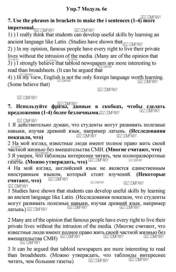 Здесь готовые ответы по Английскому языку за 11 (одиннадцатый) класс от Эванс, Дули, Оби, Афанасьева, Михеева Учебник Spotlight (издательство: Просвещение от 2015 г.) № 7