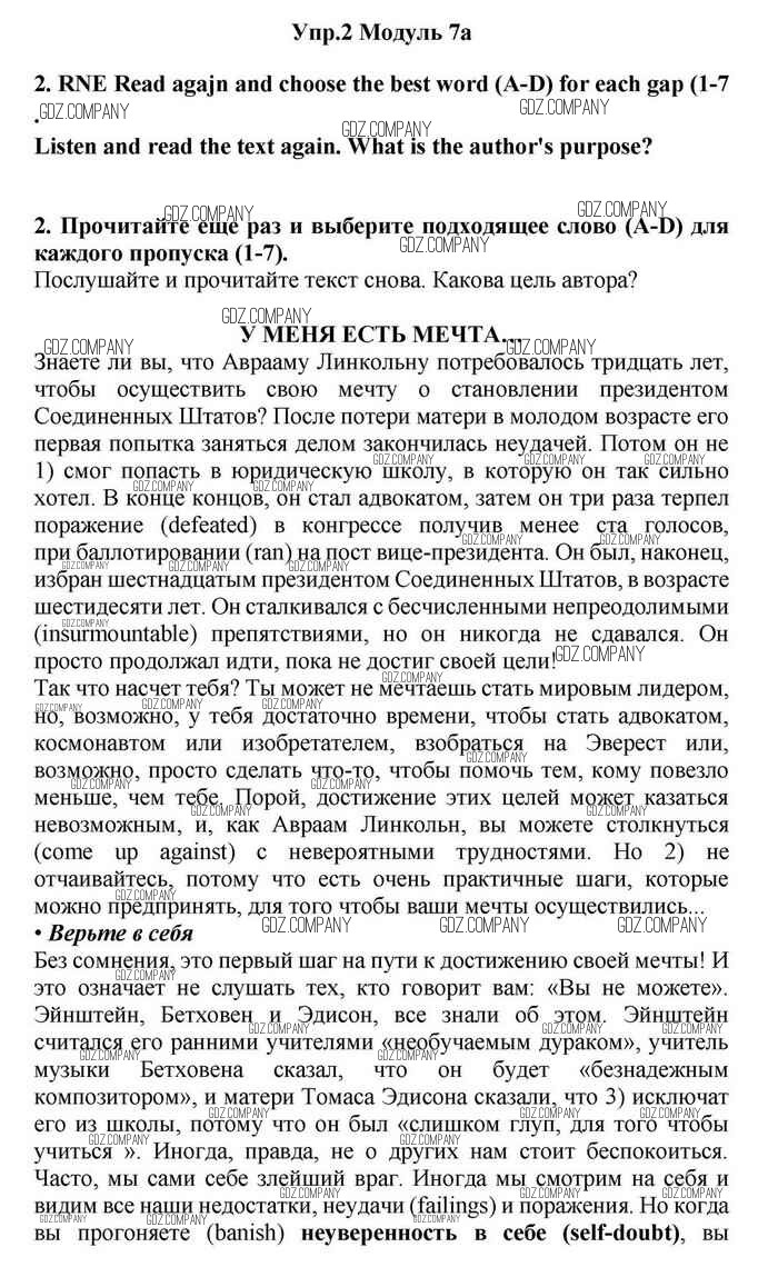 Здесь готовые ответы по Английскому языку за 11 (одиннадцатый) класс от Эванс, Дули, Оби, Афанасьева, Михеева Учебник Spotlight (издательство: Просвещение от 2015 г.) № 2