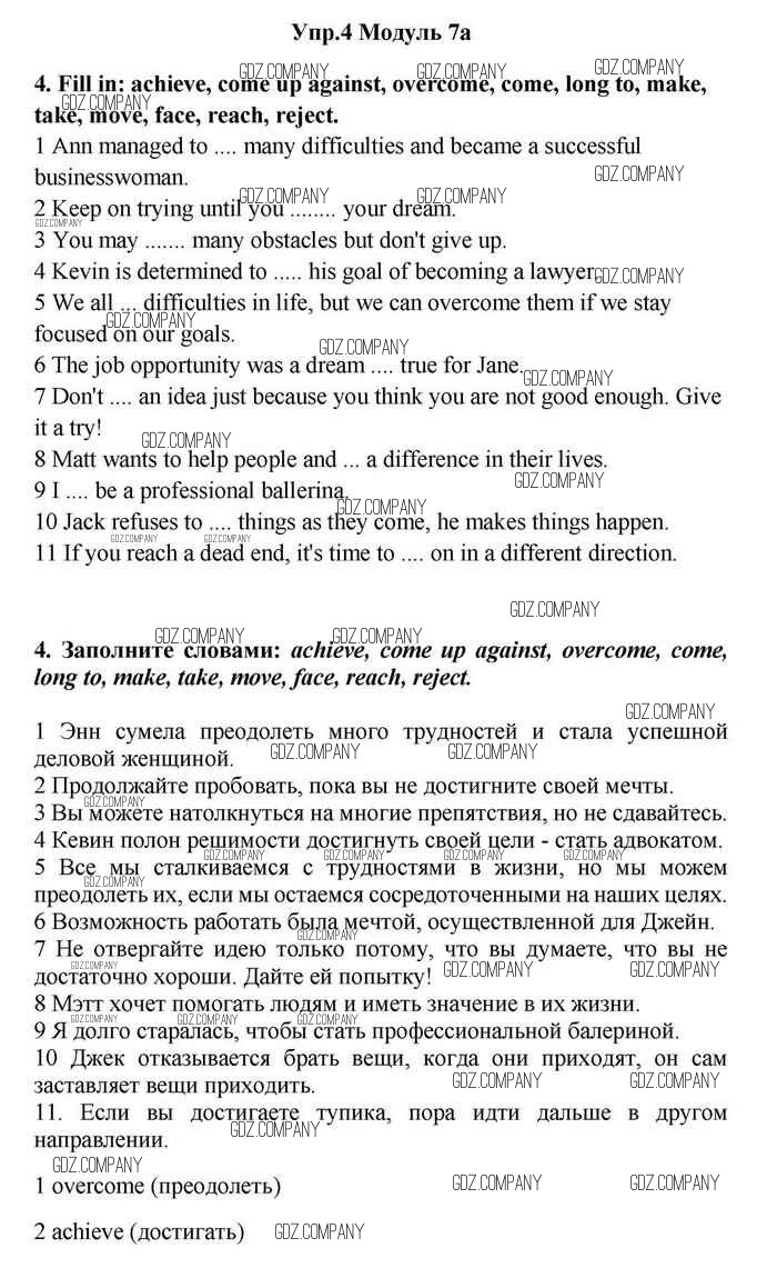 Здесь готовые ответы по Английскому языку за 11 (одиннадцатый) класс от Эванс, Дули, Оби, Афанасьева, Михеева Учебник Spotlight (издательство: Просвещение от 2015 г.) № 4