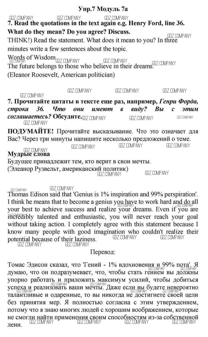 Здесь готовые ответы по Английскому языку за 11 (одиннадцатый) класс от Эванс, Дули, Оби, Афанасьева, Михеева Учебник Spotlight (издательство: Просвещение от 2015 г.) № 7
