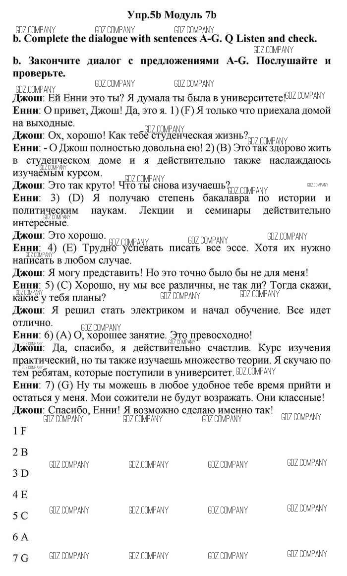Здесь готовые ответы по Английскому языку за 11 (одиннадцатый) класс от Эванс, Дули, Оби, Афанасьева, Михеева Учебник Spotlight (издательство: Просвещение от 2015 г.) № 5