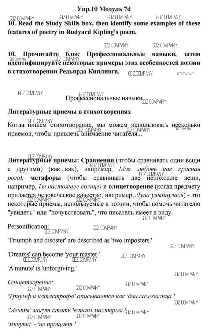 Здесь готовые ответы по Английскому языку за 11 (одиннадцатый) класс от Эванс, Дули, Оби, Афанасьева, Михеева Учебник Spotlight (издательство: Просвещение от 2015 г.) № 10