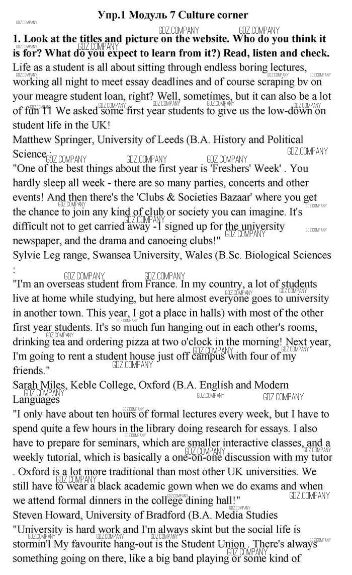 Здесь готовые ответы по Английскому языку за 11 (одиннадцатый) класс от Эванс, Дули, Оби, Афанасьева, Михеева Учебник Spotlight (издательство: Просвещение от 2015 г.) № 1