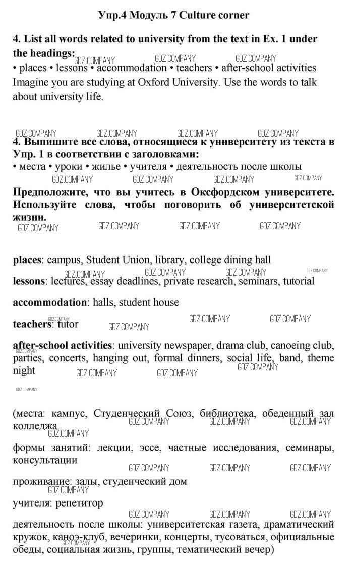 Здесь готовые ответы по Английскому языку за 11 (одиннадцатый) класс от Эванс, Дули, Оби, Афанасьева, Михеева Учебник Spotlight (издательство: Просвещение от 2015 г.) № 4