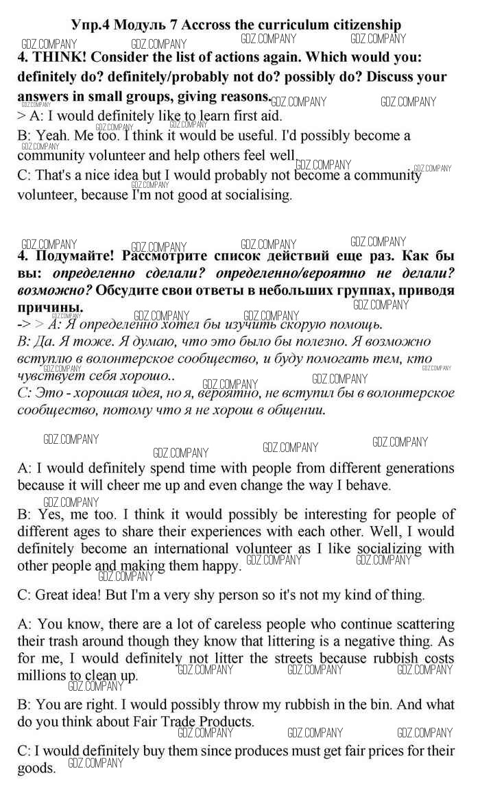 Здесь готовые ответы по Английскому языку за 11 (одиннадцатый) класс от Эванс, Дули, Оби, Афанасьева, Михеева Учебник Spotlight (издательство: Просвещение от 2015 г.) № 4