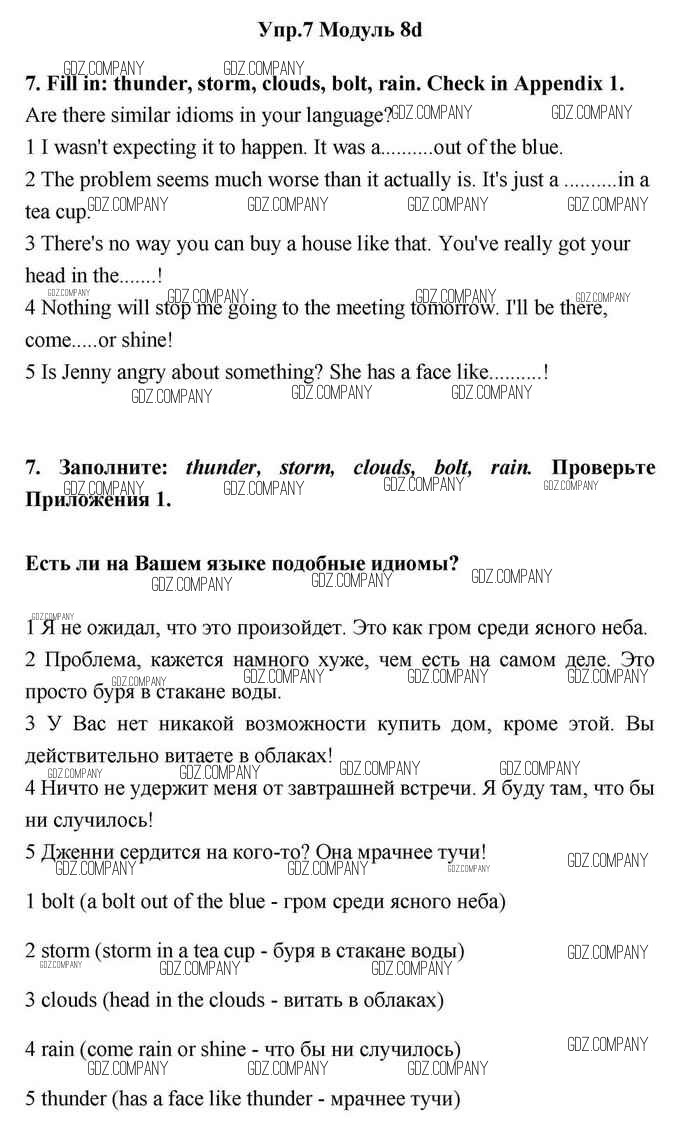 Здесь готовые ответы по Английскому языку за 11 (одиннадцатый) класс от Эванс, Дули, Оби, Афанасьева, Михеева Учебник Spotlight (издательство: Просвещение от 2015 г.) № 7