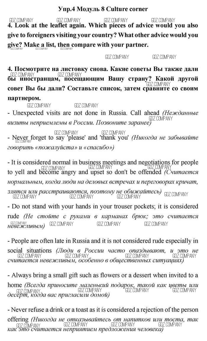 Здесь готовые ответы по Английскому языку за 11 (одиннадцатый) класс от Эванс, Дули, Оби, Афанасьева, Михеева Учебник Spotlight (издательство: Просвещение от 2015 г.) № 4