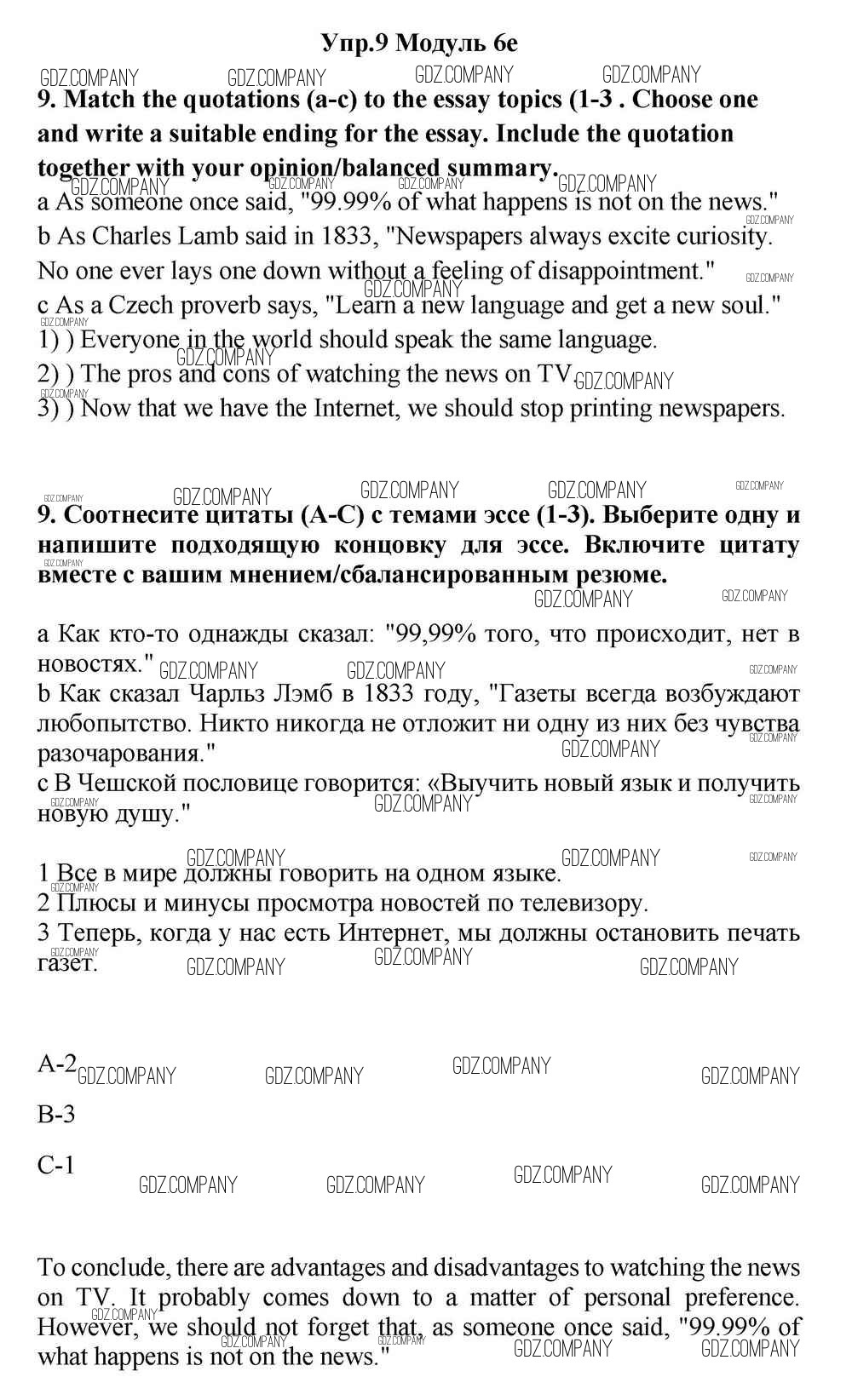 Здесь готовые ответы по Английскому языку за 11 (одиннадцатый) класс от Эванс, Дули, Оби, Афанасьева, Михеева Учебник Spotlight (издательство: Просвещение от 2015 г.) № 9