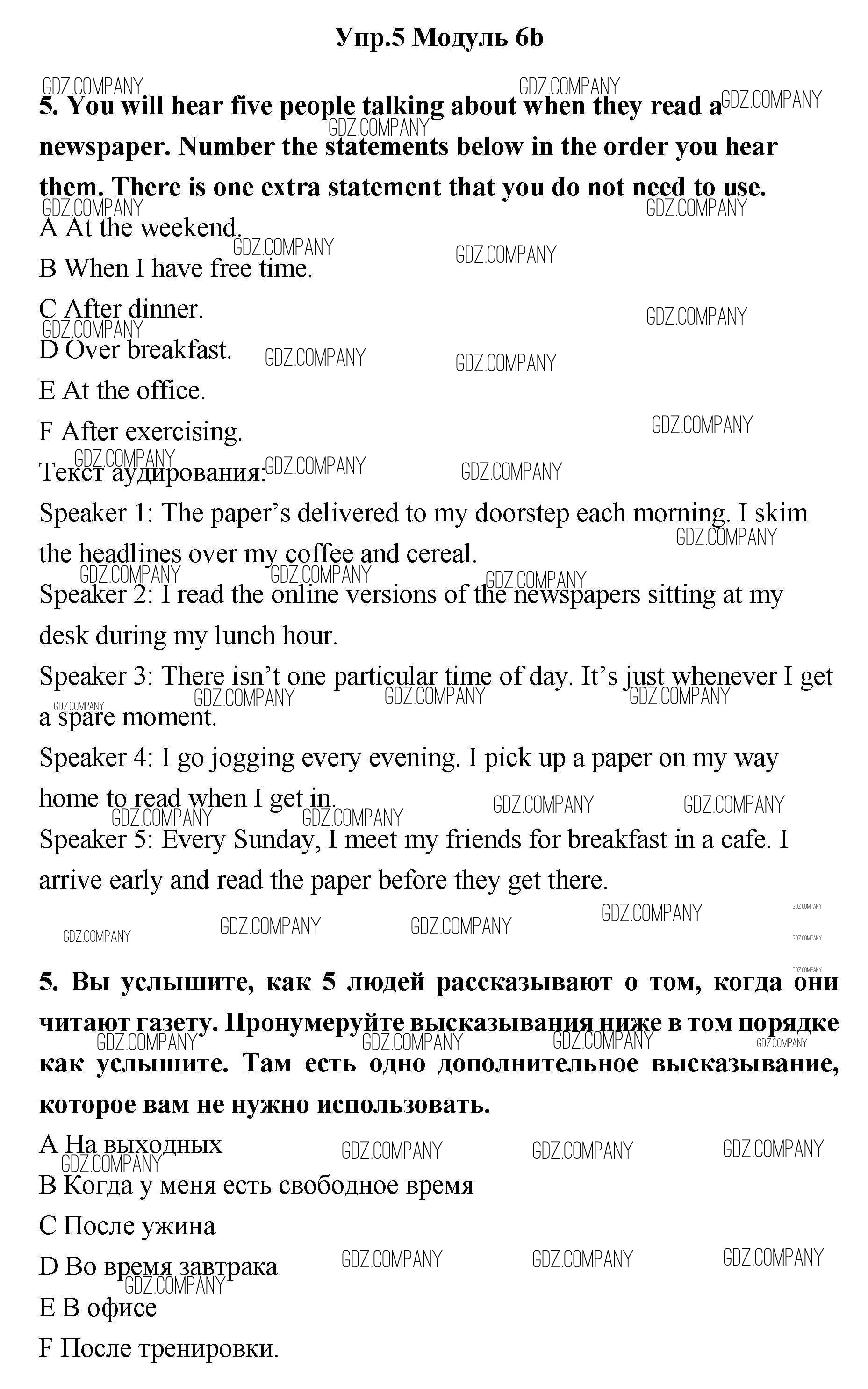 Здесь готовые ответы по Английскому языку за 11 (одиннадцатый) класс от Эванс, Афанасьева, Дули, Михеева, Оби Рабочая тетрадь Spotlight (издательство: Просвещение от 2015 г.) № 5