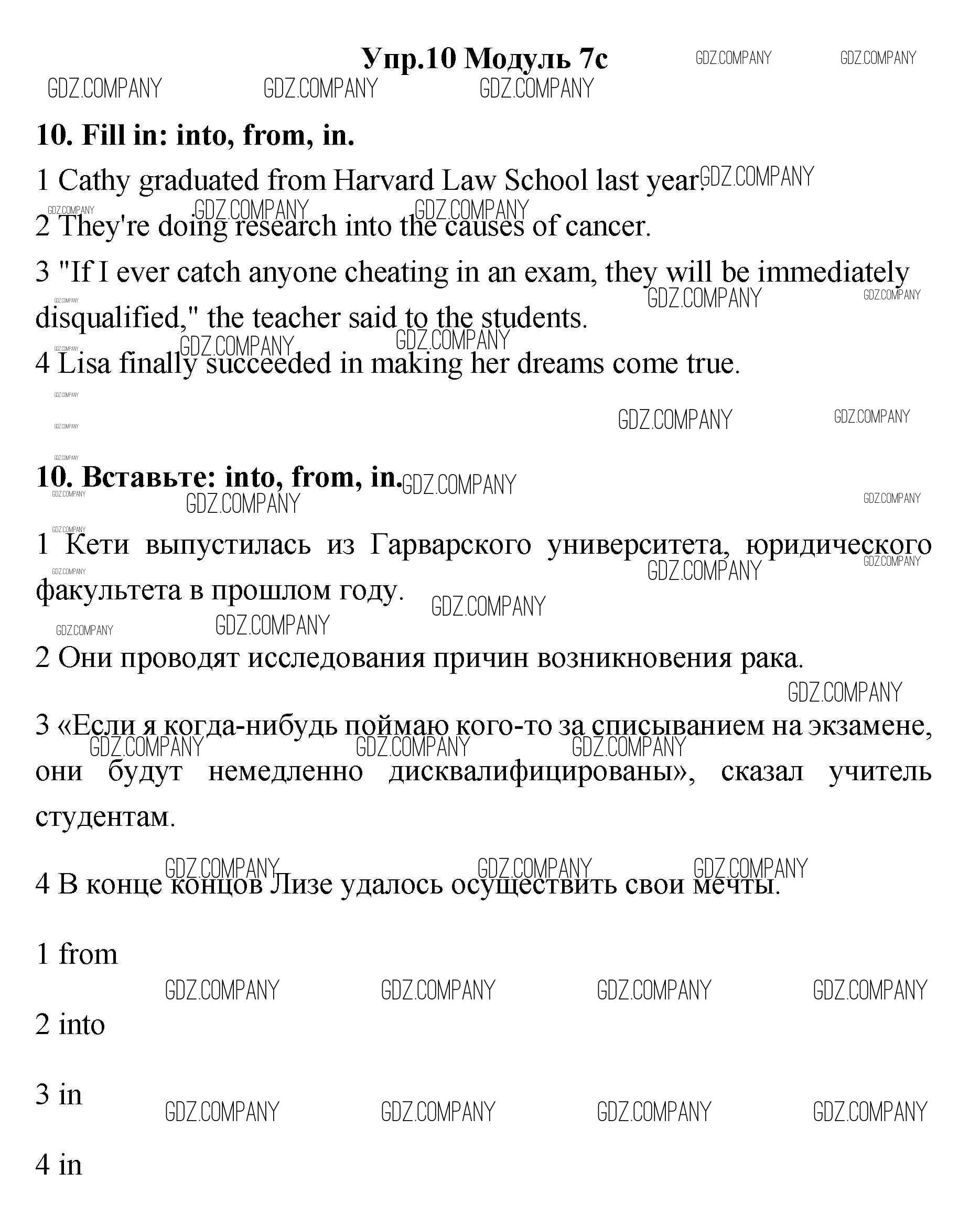 Здесь готовые ответы по Английскому языку за 11 (одиннадцатый) класс от Эванс, Афанасьева, Дули, Михеева, Оби Рабочая тетрадь Spotlight (издательство: Просвещение от 2015 г.) № 10