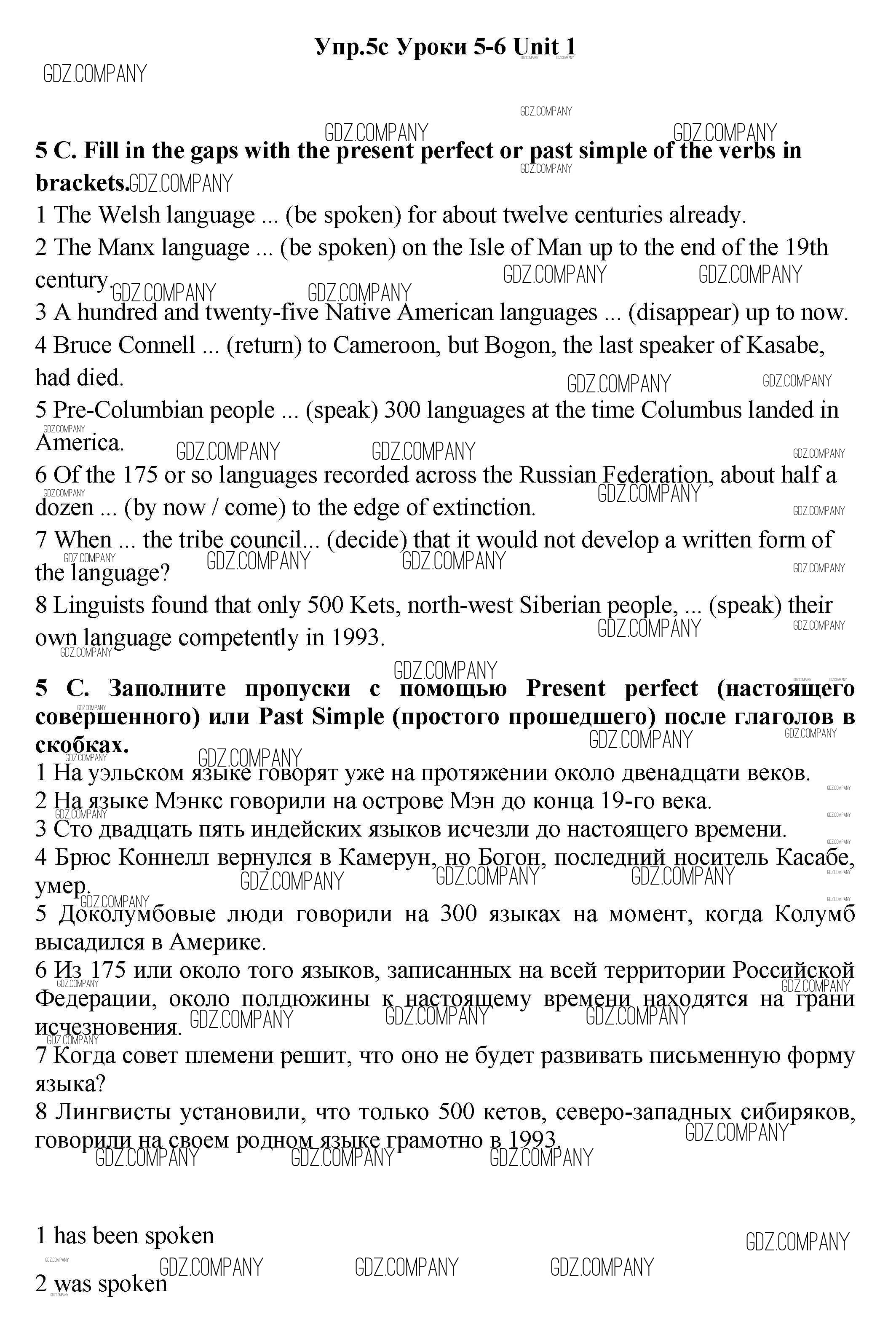 Здесь готовые ответы по Английскому языку за 11 (одиннадцатый) класс от Гроза, Дворецкая Учебник New Millennium (издательство: Титул от 2015 г.) № 5c