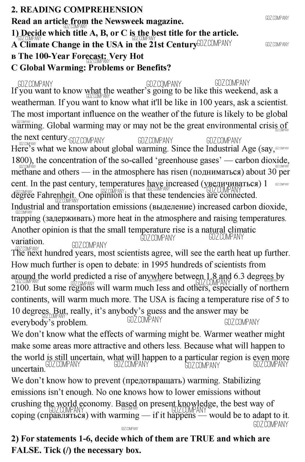 Здесь готовые ответы по Английскому языку за 11 (десятый) класс от Кузовлев, Лапа, Перегудова Учебник (издательство: Просвещение от 2012 г.) № 2