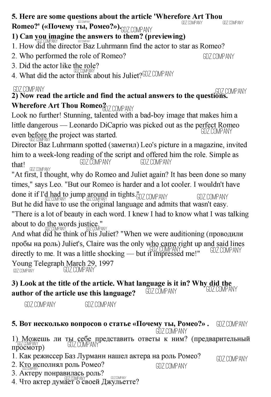 Здесь готовые ответы по Английскому языку за 11 (десятый) класс от Кузовлев, Лапа, Перегудова Учебник (издательство: Просвещение от 2012 г.) № 5