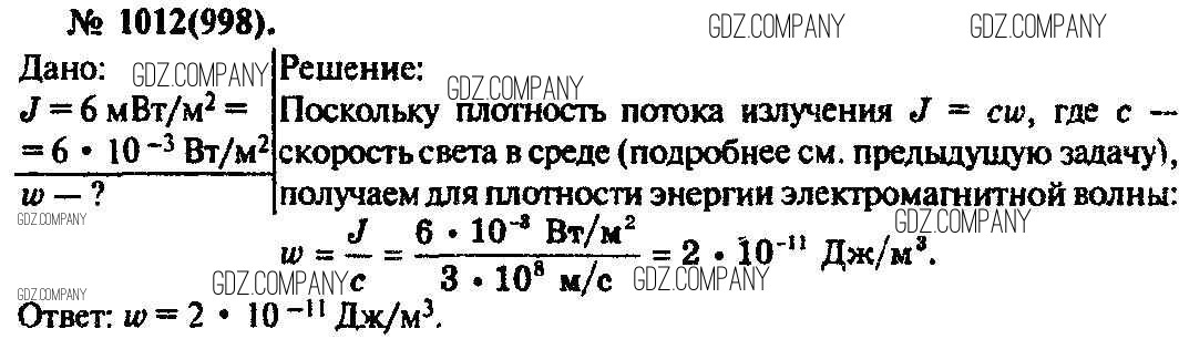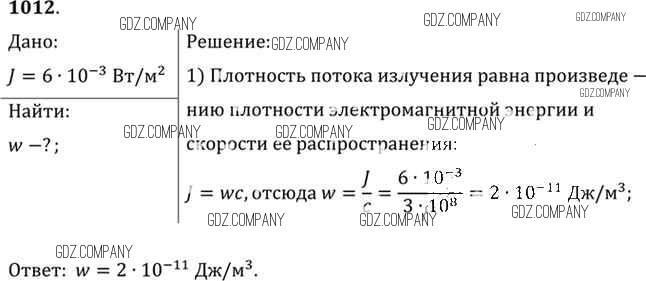Здесь готовые ответы по Физике за 11 (десятый) класс от Рымкевич Задачник УМК (издательство: Дрофа от 2013 г.) № 1012