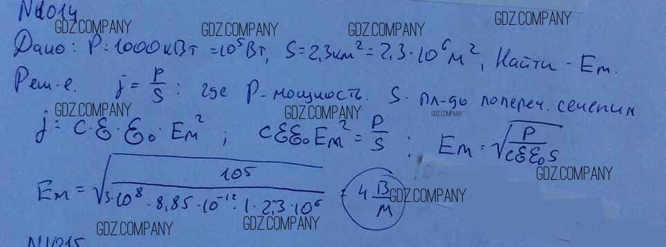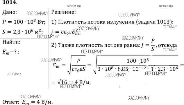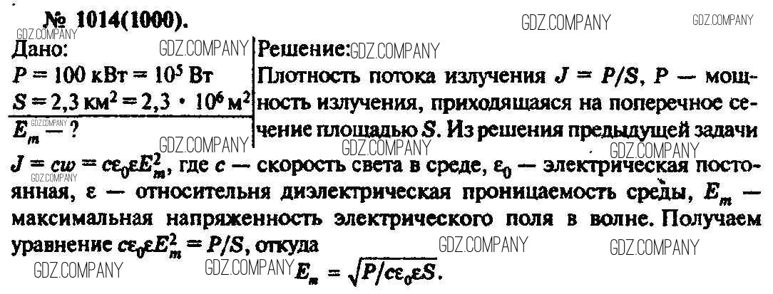 Здесь готовые ответы по Физике за 11 (десятый) класс от Рымкевич Задачник УМК (издательство: Дрофа от 2013 г.) № 1014