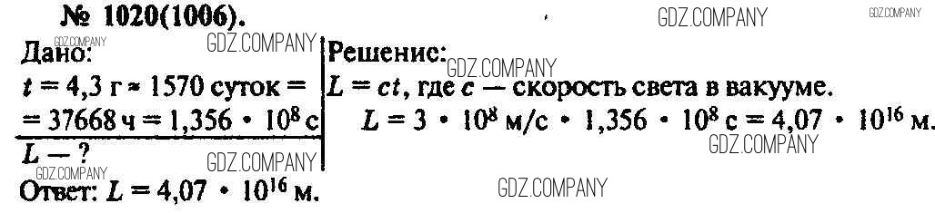 Здесь готовые ответы по Физике за 11 (десятый) класс от Рымкевич Задачник УМК (издательство: Дрофа от 2013 г.) № 1020