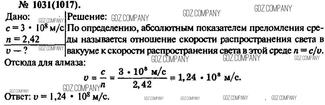 Здесь готовые ответы по Физике за 11 (десятый) класс от Рымкевич Задачник УМК (издательство: Дрофа от 2013 г.) № 1031